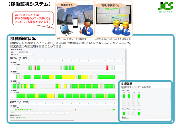 1983年の創立時の会計システムから始まり、現在はクラウド型の生産管理システムも手がけています。IoTを用いた製造装置の能率管理、海外拠点も含めた生産情報の見える化を推し進め、それらのデータの分析ツールの提供へと発展を続けています。