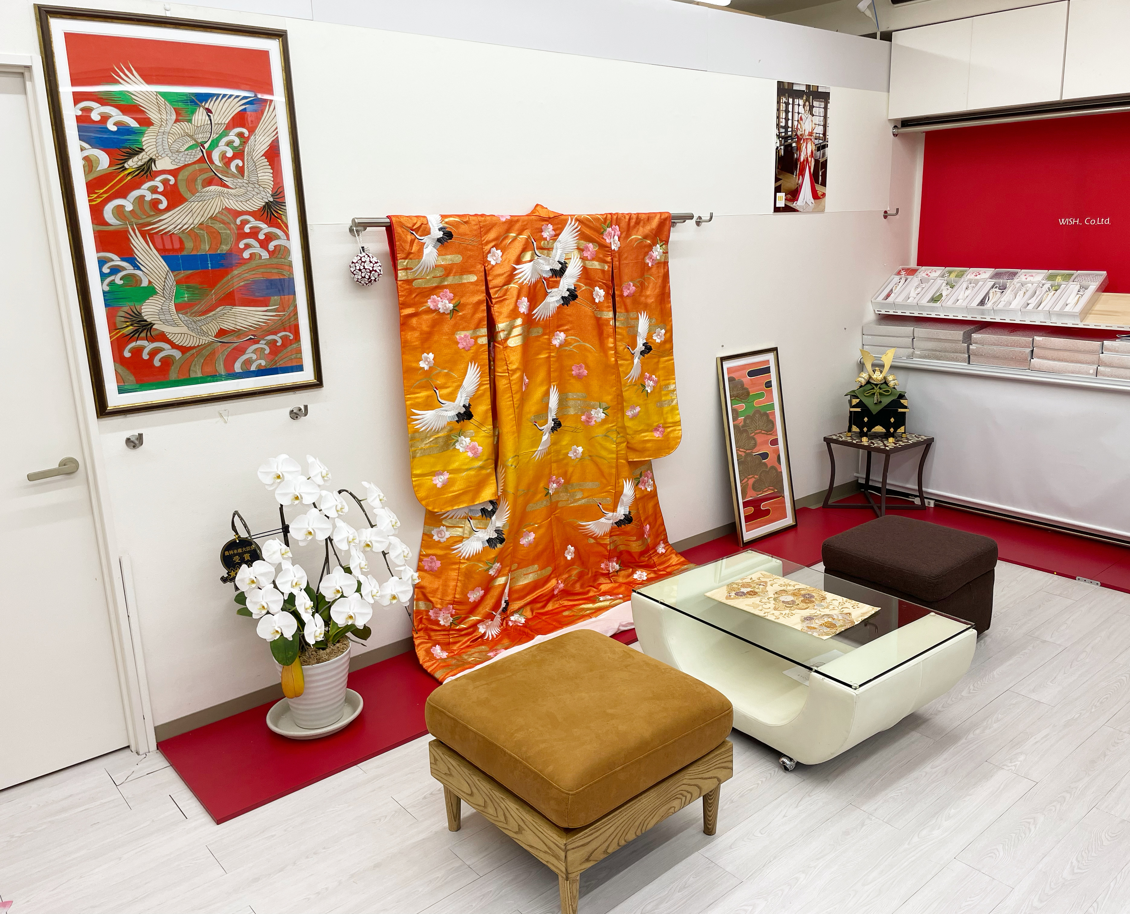 花嫁衣裳の色打掛をタペストリーとして部屋にインテリアとして飾るコレクターが存在し、越境ECサイトで販売中です。(香港、ニューヨーク、スペイン、台湾、イギリスなどの販売実績あり)。